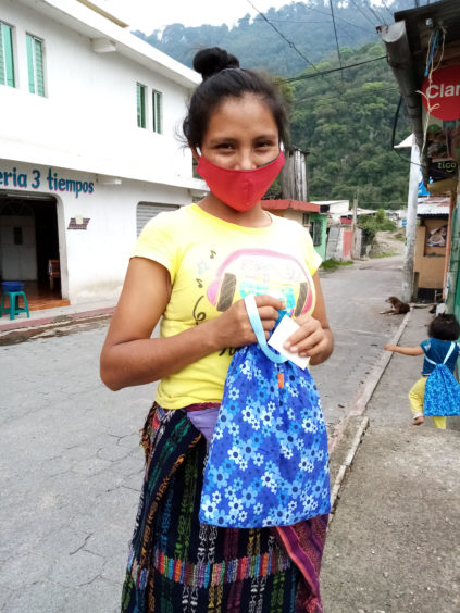 In Guatemala, the team has also been practicing social distancing. Similar to the other countries where Days for Girls is operating, Guatemala has limited hours during which business are open and allowed to operate. Markets are only open in the morning, and a nationwide curfew is in place from 4:00 p.m. to 4:00 a.m. daily. Only essential personnel are allowed out of their homes during this time. This has allowed the team to continue their work during a few limited hours a day in safe and socially distant spaces. In addition to making menstrual kits, the team has also been producing face masks to ensure the safety of the community and medical personnel.