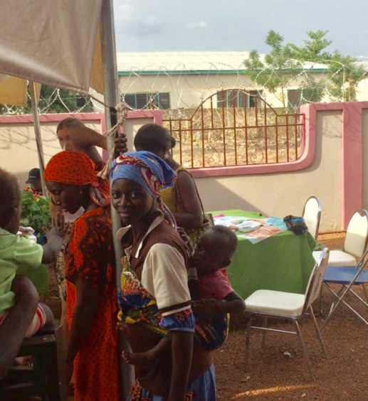 The group traveled with the Center staff to participate in a distribution outside the capital. Below are women receiving their DfG Kits, made by the Ghana Center.